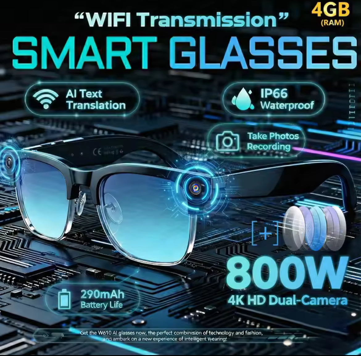 METRA AI 4-in-1 Smart Glasses, 1080p recording glasses AI built in with app integration Bluetooth capabilities with built in speakers and microphone